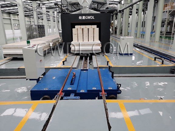 1.顶车机在托车道外边布置,推力15吨,每车进窑时间3min-30min可调,电机总功率为3.75kw。