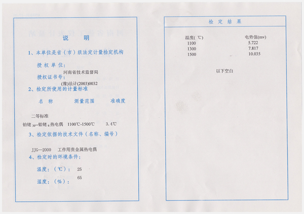 2、在 250~550℃范围内短期热循环稳定性不好,即使在同一温度点上,在升降温过程中其热电动势值也不一样,其差值可达 2~5℃。